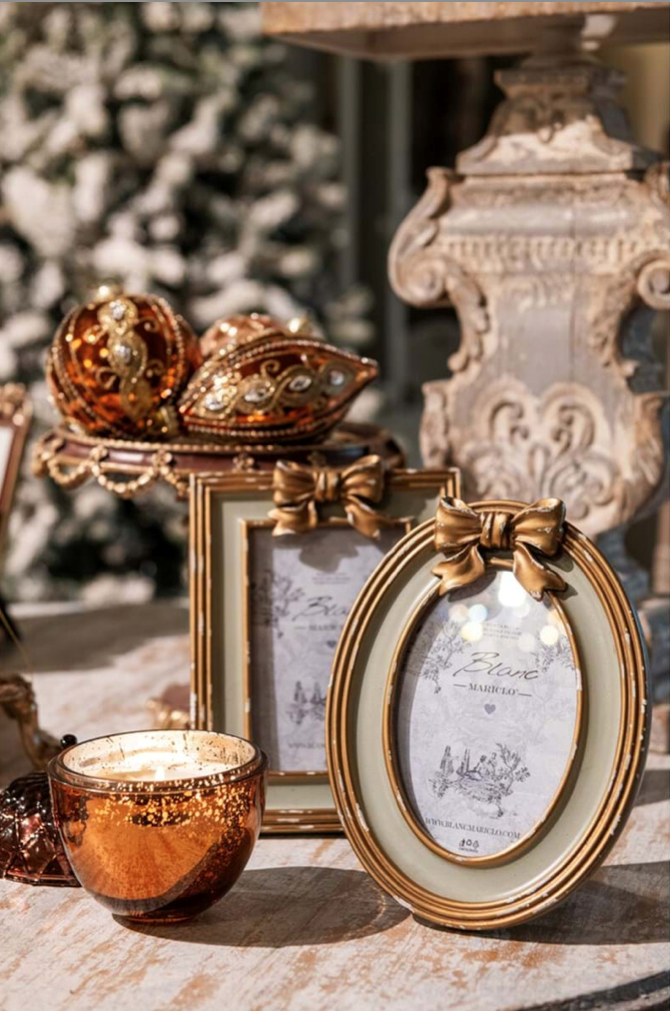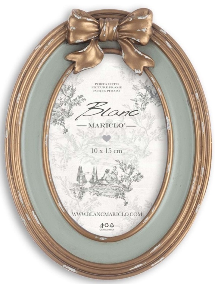 Фоторамка из коллекции VILLA CLARA мятно серого оттенка с легкой патиной цвета шампань. Размер фотографии 16.3 см на 21,2 см