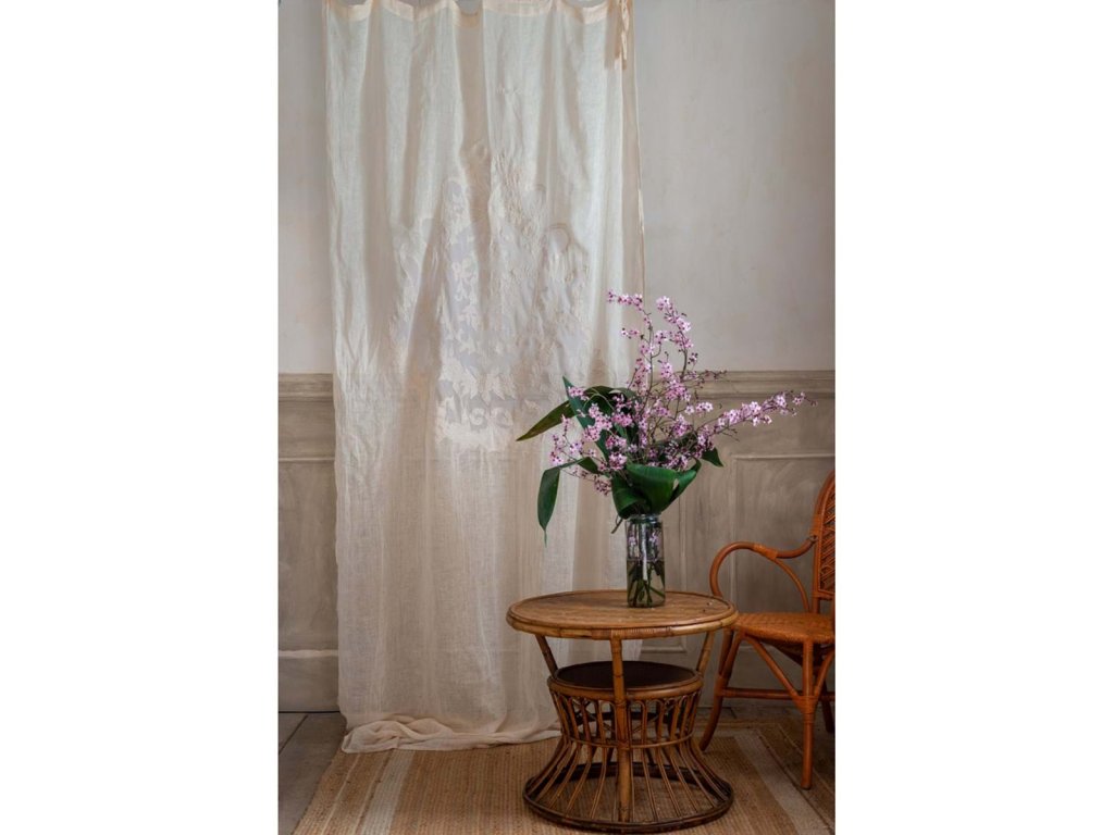 Роскошная легкая штора из тонкого муслина кремового оттенка, на тканевых завязках. Украшена вышитым букетом в стиле «Барокко»
